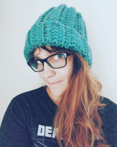 Micha starting croheting while on maternity leave with her third child. She went over to a friend’s house for wine and crochet lessons while bored one day. It was love at first stitch.